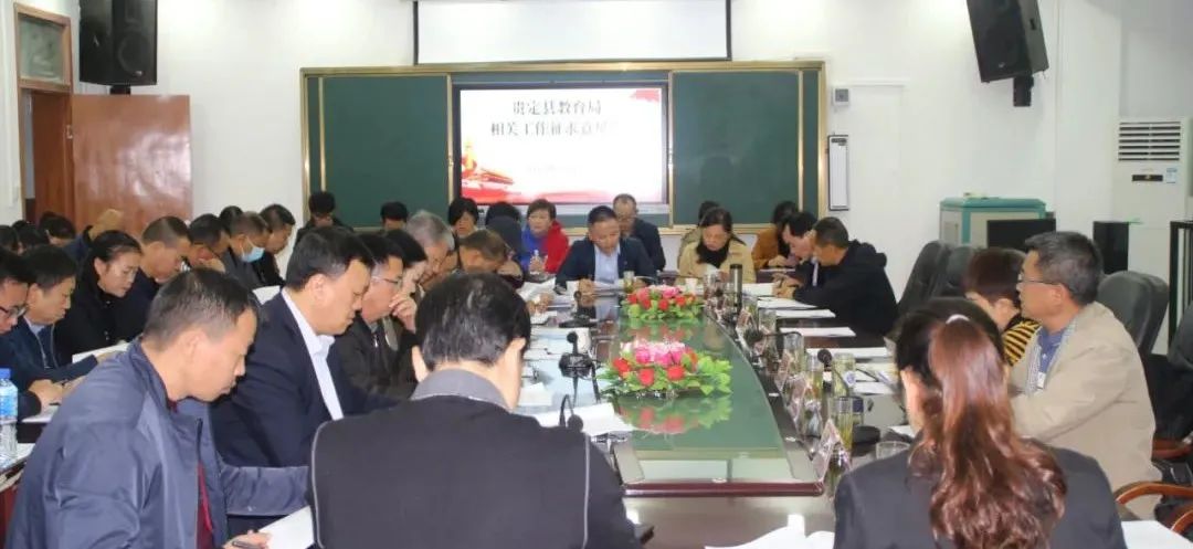 在全面贯彻落实全省教育高质量发展大会精神之际,为全面推进我县教育高质量发展,激发教育内生动力,切实提升教育教学质量,贵定县教育局于2021年10月14日上午在贵定二中召开教育相关工作征求意见会。会议由贵定县教育局柏榜样副局长主持,教育局班子成员、基教科、政工科、教研中心、学前科、办公室等办公室负责人、各教育指导站站长、各直属学校校长、初中校长、9所小学校长以及16名一线教师代表50余人参会。